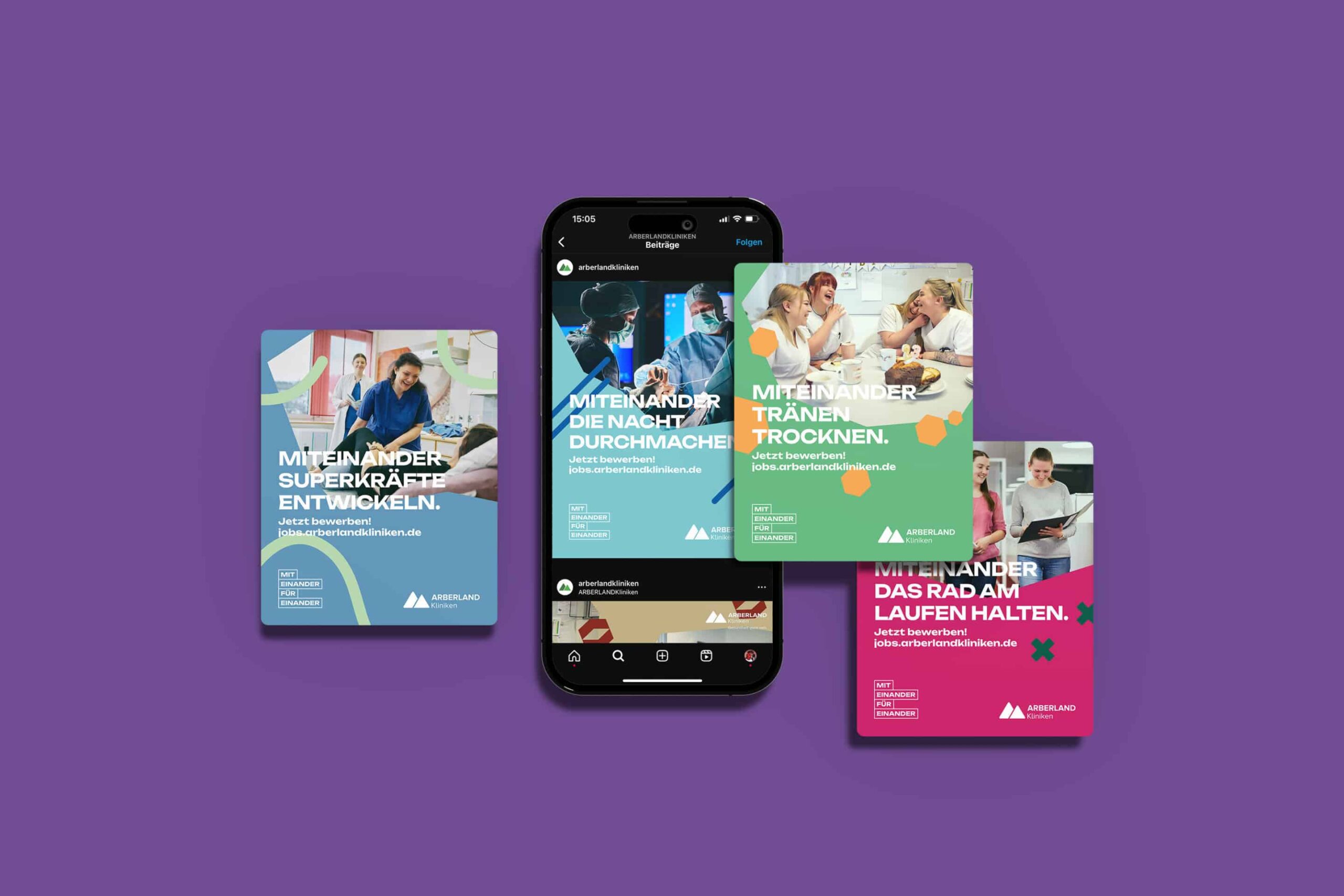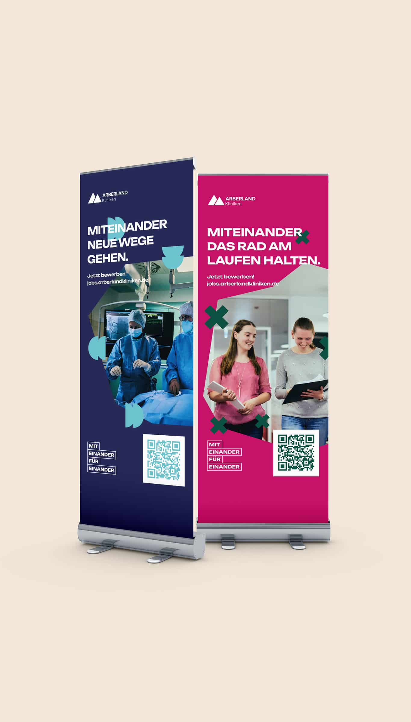 Das Leitbild der Arberlandkliniken – Miteinander. Füreinander – diente als Grundlage für starke Botschaften, die die Herausforderungen des Pflegeberufs in emotionaler und zugleich authentischer Weise vermitteln. Verpackt in einem auffälligen Kampagnendesign, das sich mit starken Kontrasten bewusst von der bekannten Firmenidentität abhebt, wurden diese Botschaften nicht nur auf Kampagnenmotiven und einem bewegenden Kampagnenfilm zum Leben erweckt, sondern prägen auch unsere Karrierewebsite, Merchandise, Großflächenplakate, Postwurfsendungen und Events für Mitarbeitende.